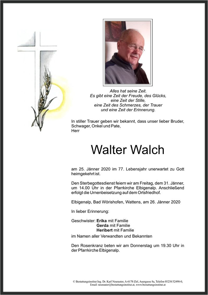Ruhe sanft, lieber Walter! Gabriele m. Kinder