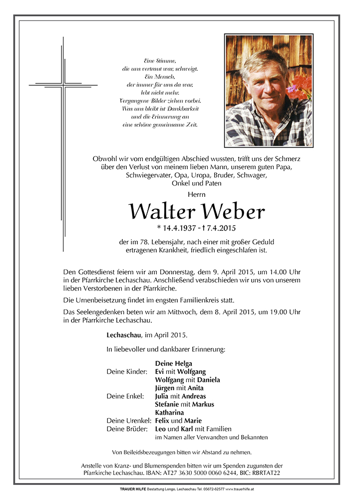 Werte Trauerfamilie Weber