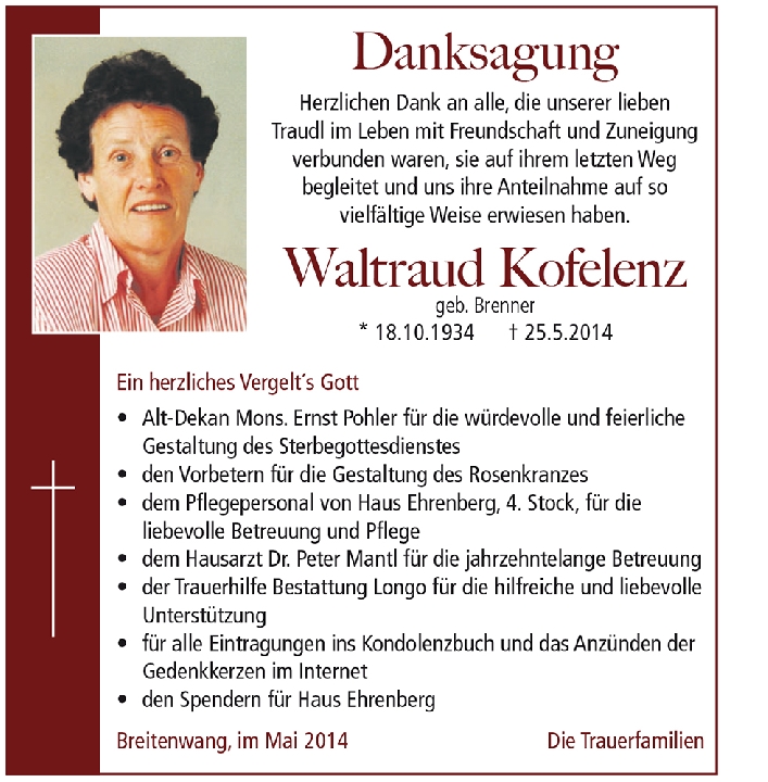 Kondolenzbuch für Waltraud Kofelenz
