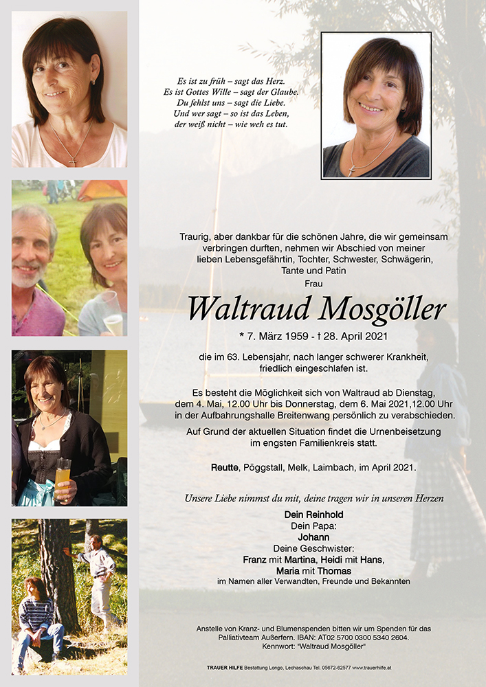 Kondolenzbuch für Waltraud Mosgöller