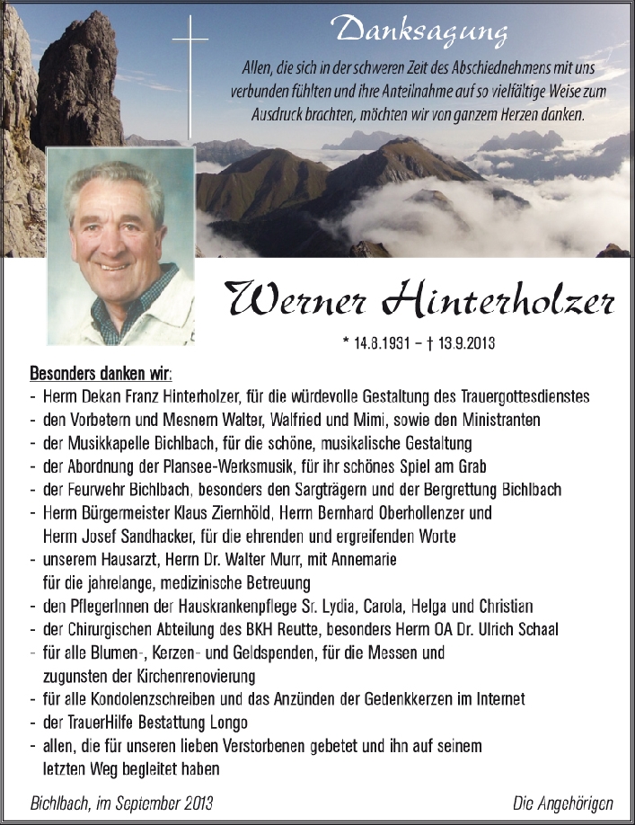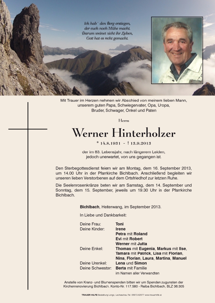 Kondolenzbuch für Werner Hinterholzer