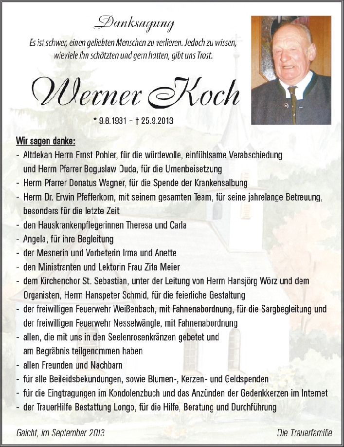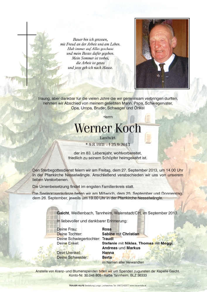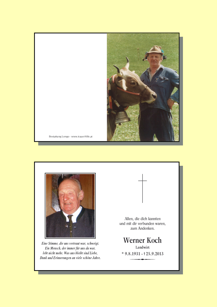 Aufrichtige Anteilnahme zum Heimgang von Werner Fam. Kurt Karina Falger