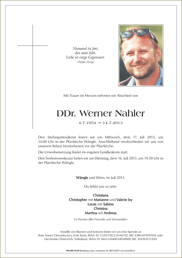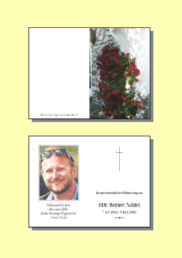 herzliches Beileid zum Tod von Herrn DDr. Nahler - wir werden ihm ein ehrendes Andenken bewahren