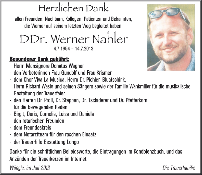 Liebe Familie Nahler 16.07.2013 um 10:36 Uhr
