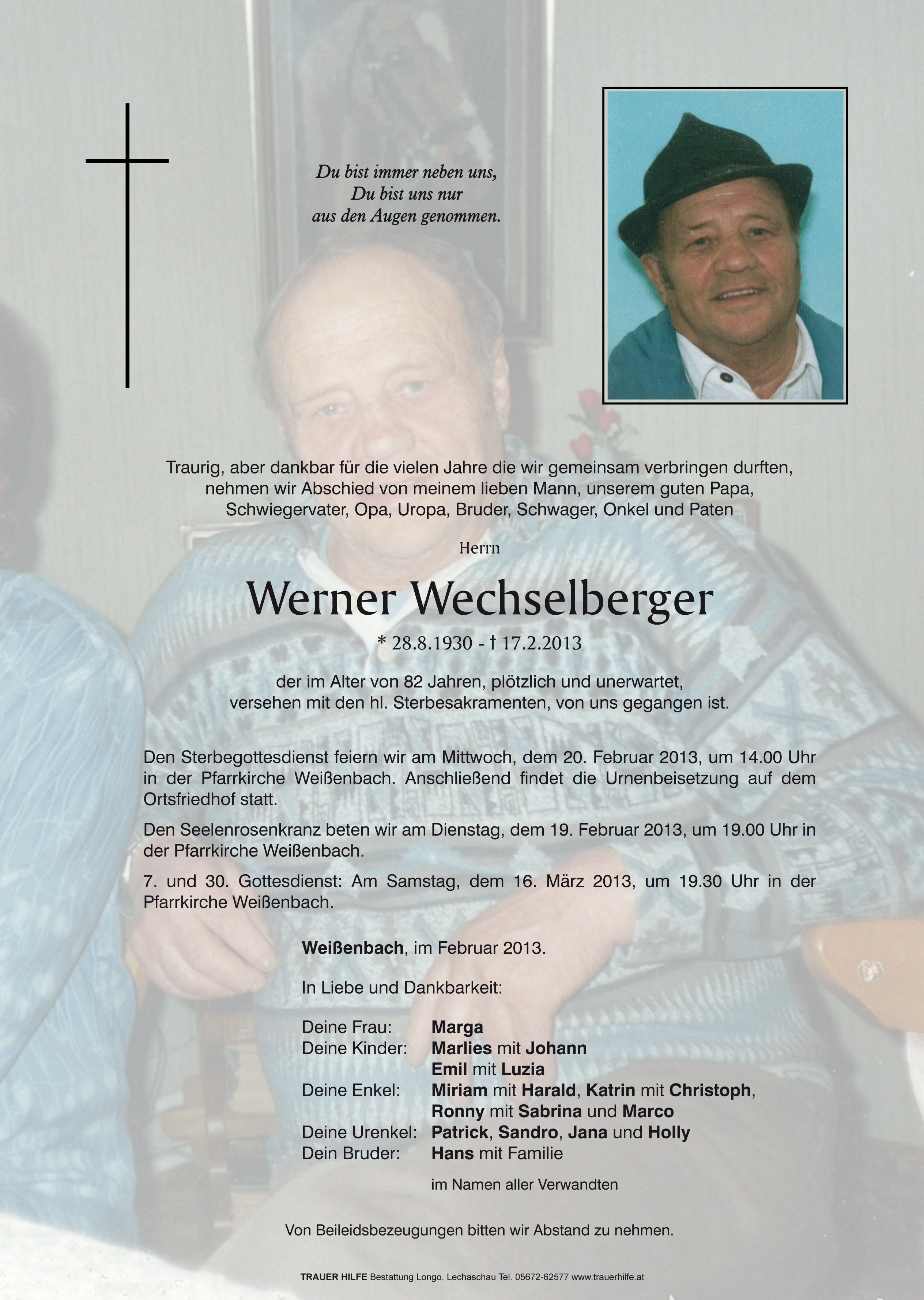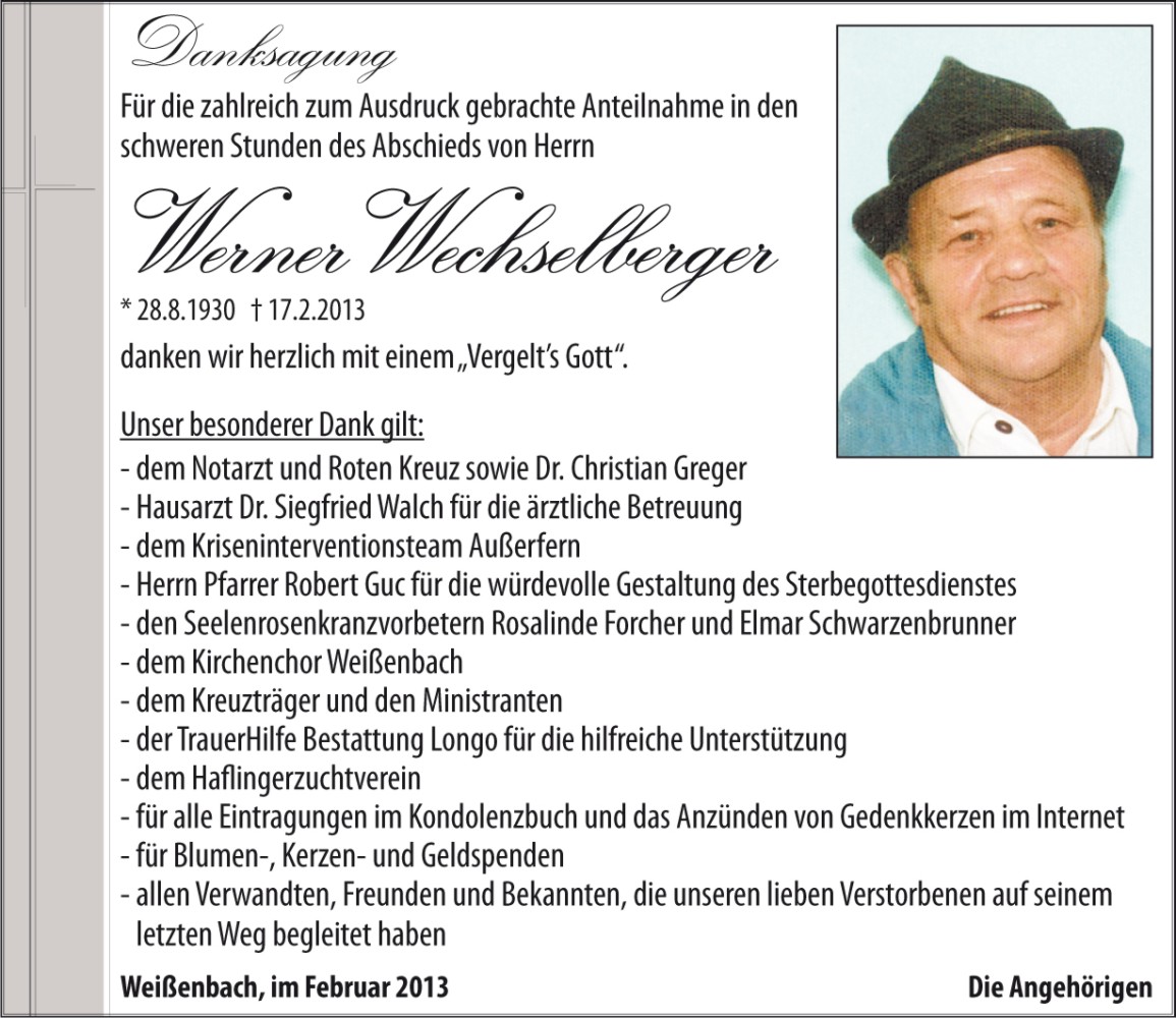 Kondolenzbuch für Werner Wechselberger