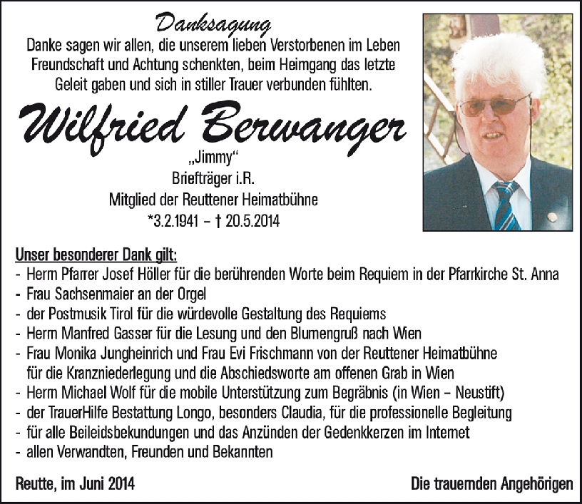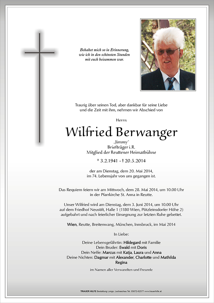 Kondolenzbuch für Wilfried Berwanger