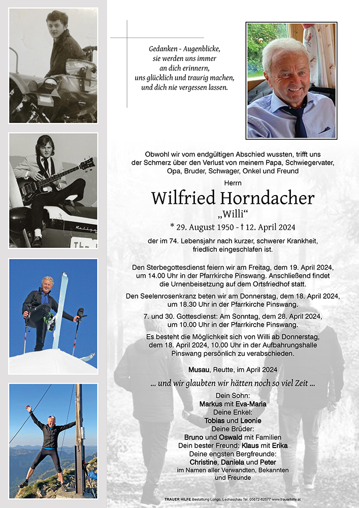 ich habe dich als sportlichen, unternehmungslustigen, fröhlichen und hilfsbereiten Menschen kennengelernt. Du hast mich auf meine erste schwierigere Bergtour mitgenommen und mir Mut und Selbstbewusstsein zugesprochen und somit konnte ich meine Angst überwinden und den Gipfel erreichen.