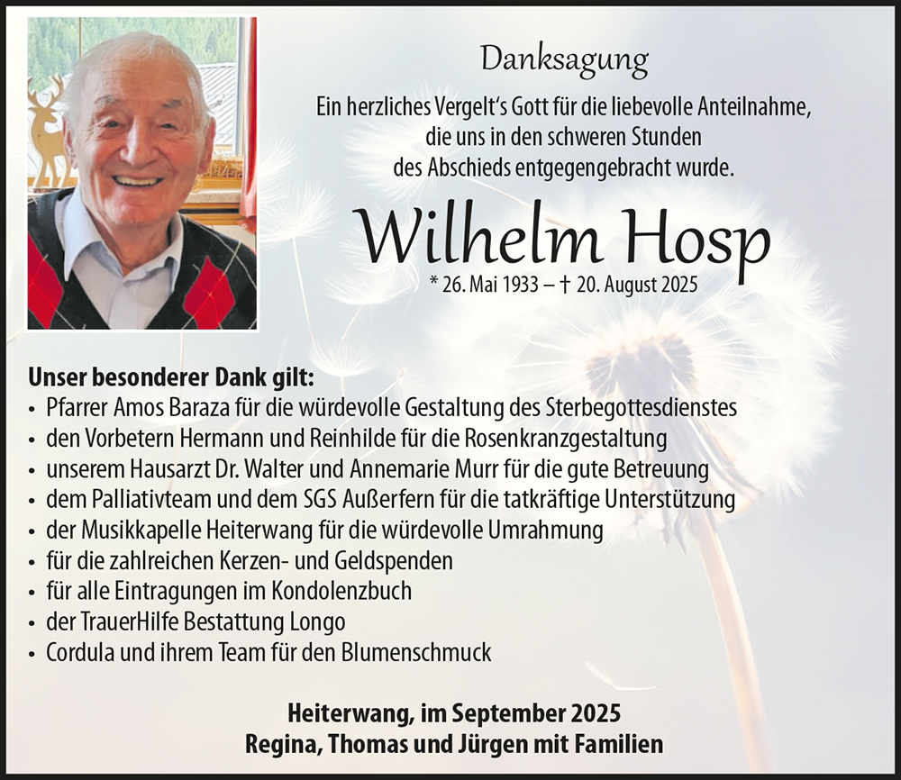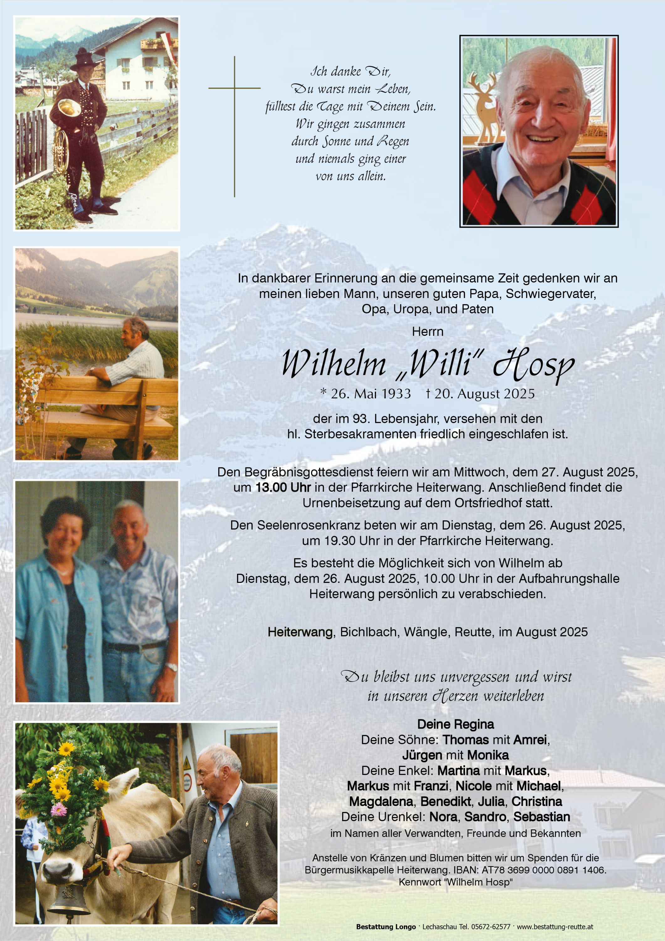 Kondolenzbuch für Wilhelm "Willi" Hosp