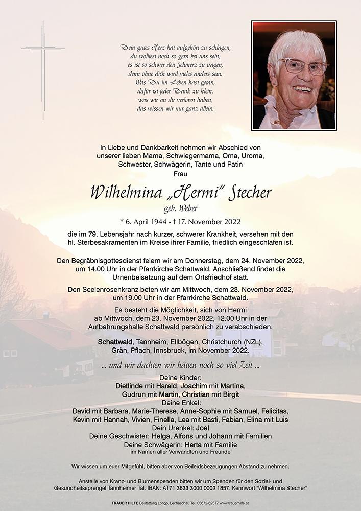 Kondolenzbuch fĂŒr Wilhelmina Stecher