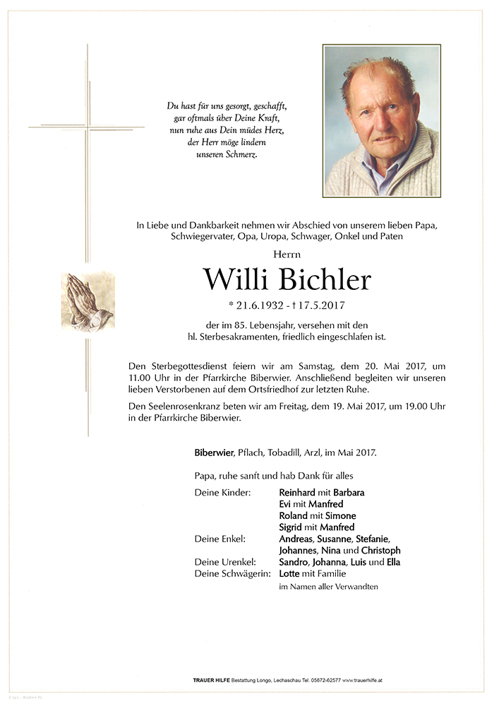 Kondolenzbuch für Willi Bichler