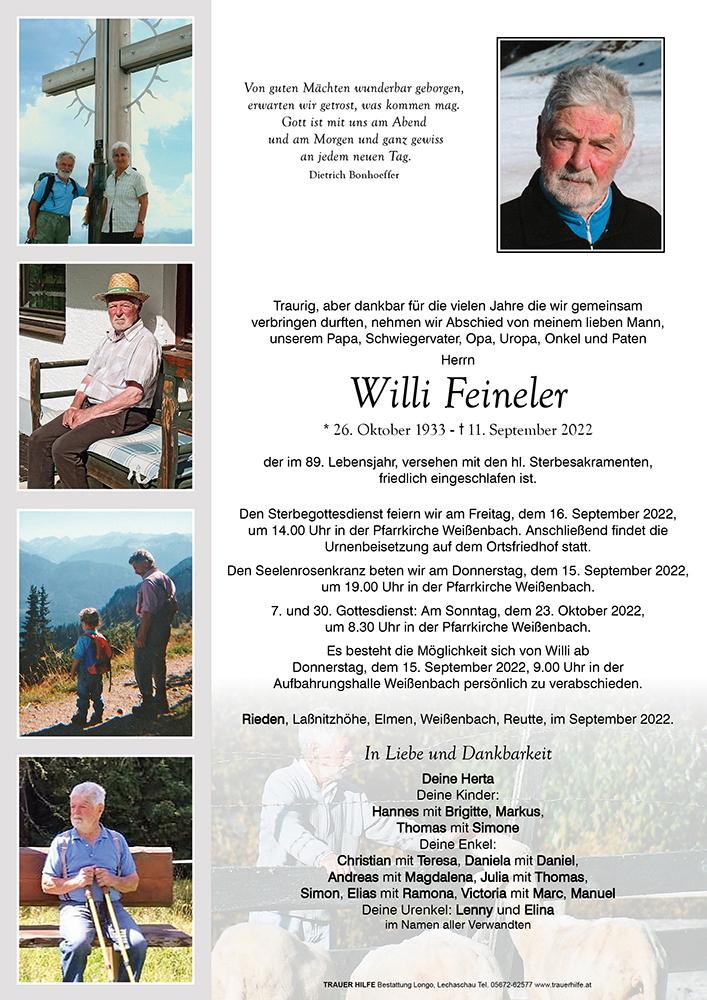 Wir werden Willi immer in liebevoller Erinnerung behalten.