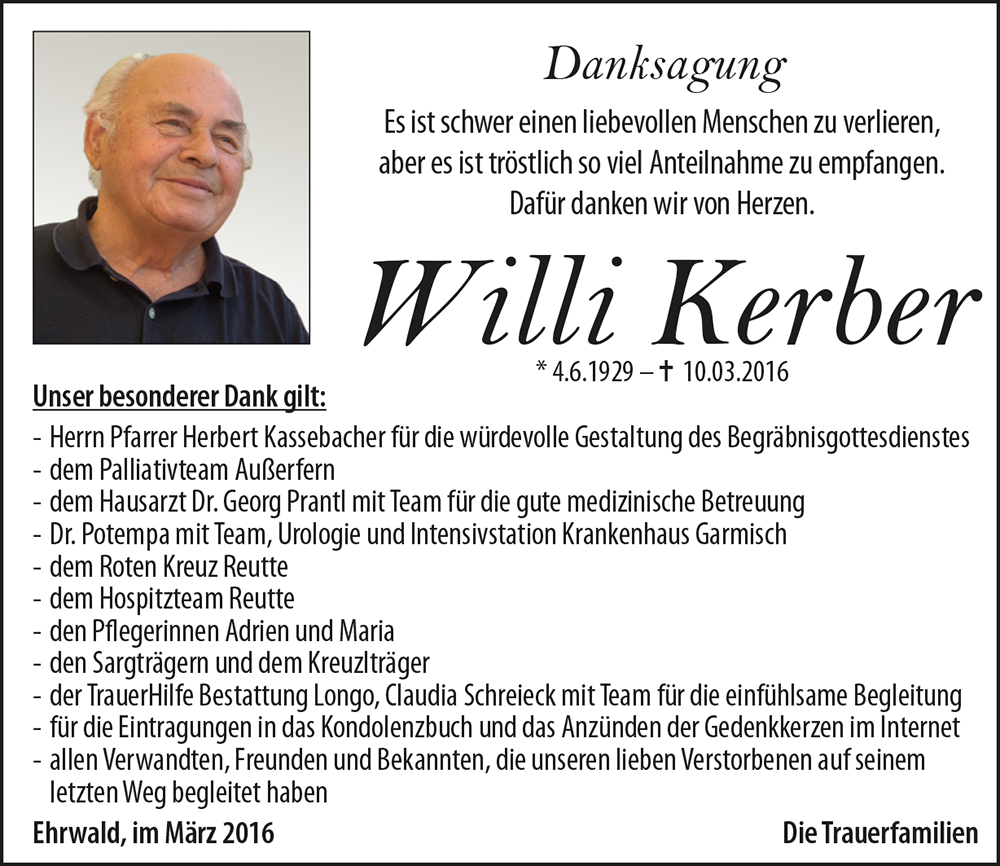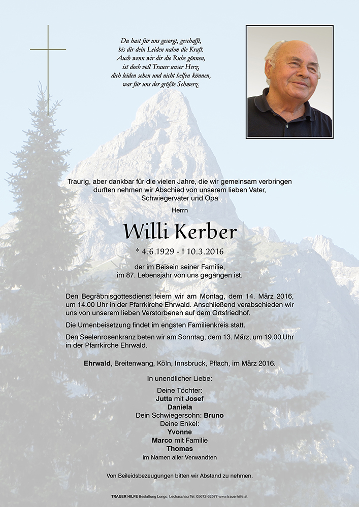 In Erinnerung an das Begräbnis eurer lieben Mutter kann ich mir vorstellen daß für Willi in letzter Zeit die Sehnsucht nach seiner Martha größer war als sein Lebenswille.