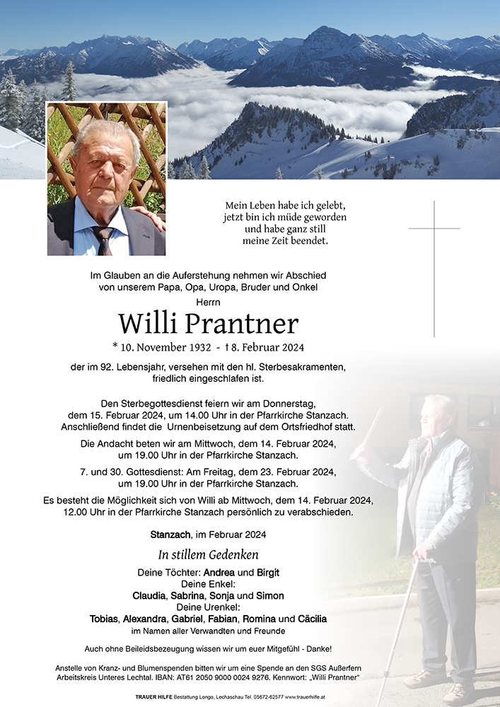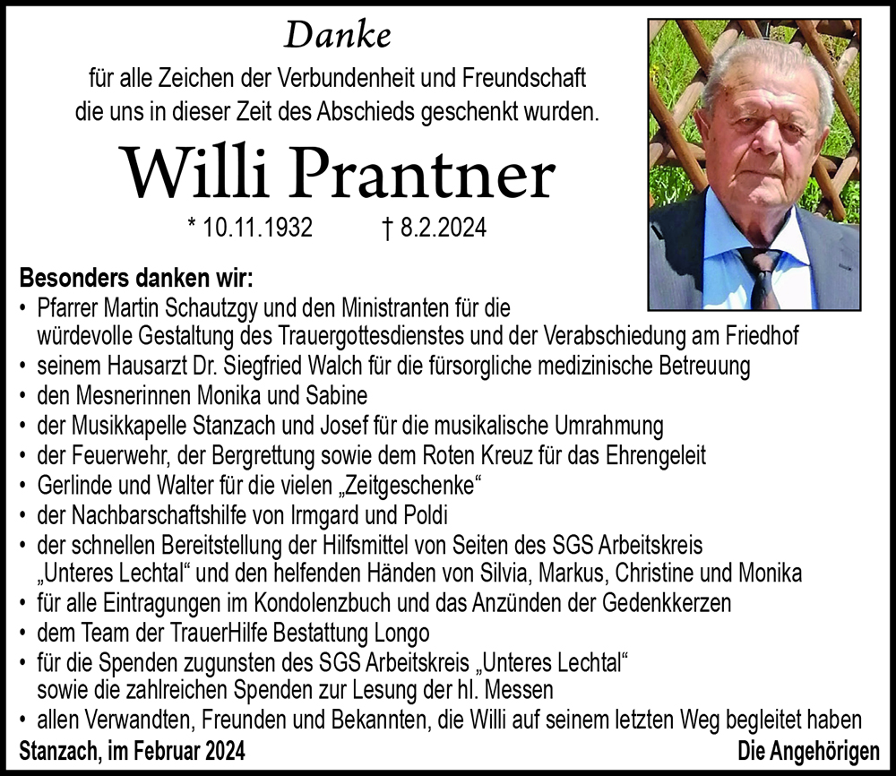 Liebe Trauerfamilie Prantner