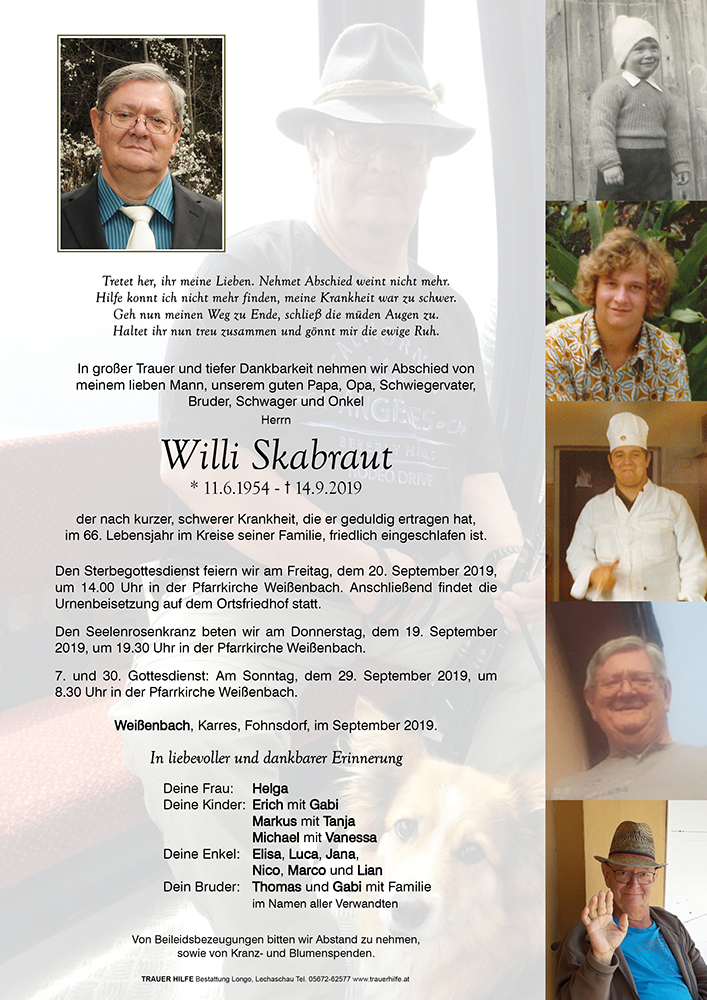 Den Mann, den Vater zu verlieren ist sehr schmerzlich. Der ÖPV Ortsgruppe Weissenbach wünscht euch allen viel Kraft in dieser schweren Zeit. Wir haben Willi als ausgesprochen netten und liebenswürdigen Menschen kennen gelernt. Er ruhe in Frieden.