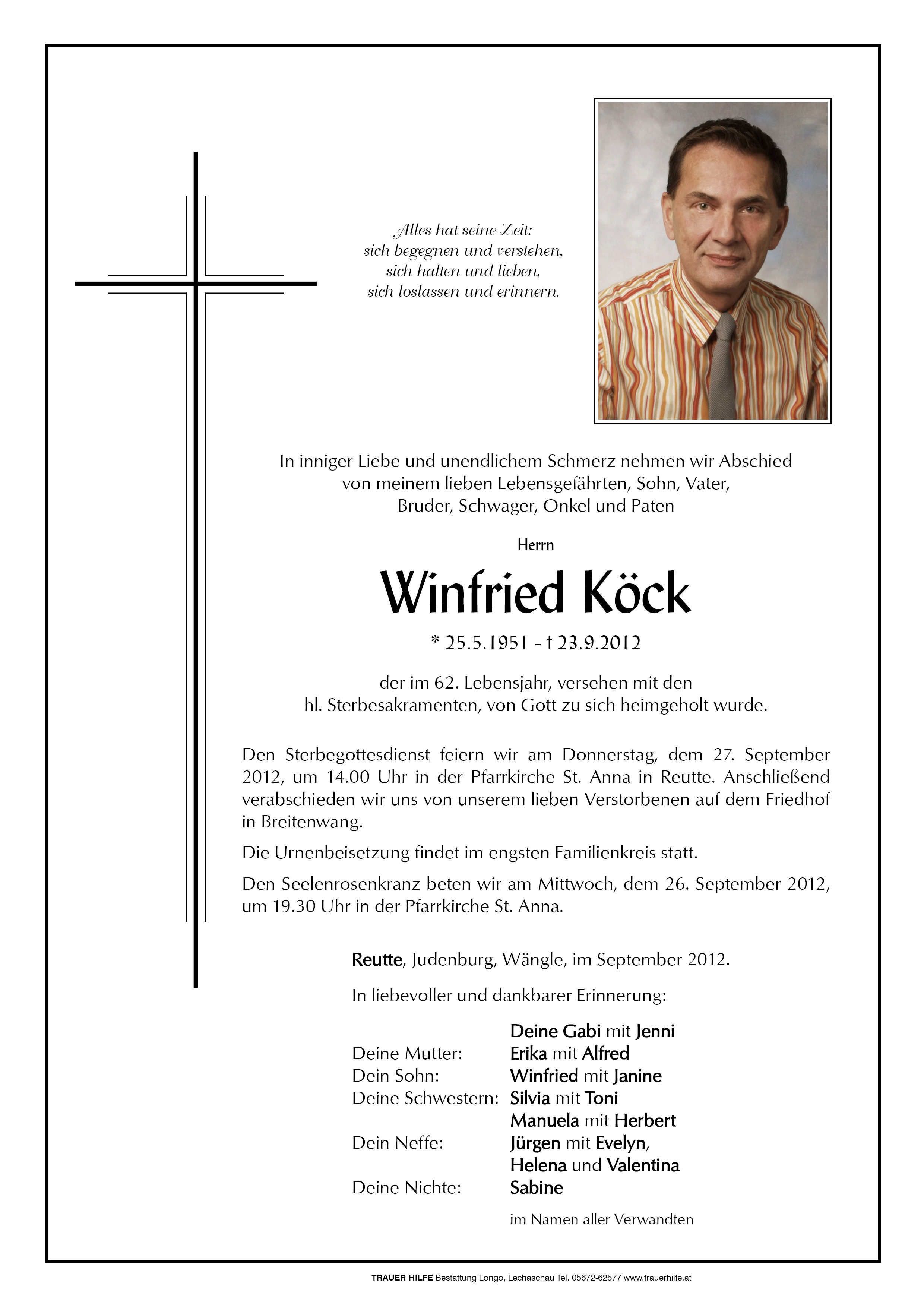 Wir haben uns zwar etwas aus den Augen verloren, die Nachricht von Winfried\\\'s Tod hat mich deswegen jedoch nicht weniger getroffen.