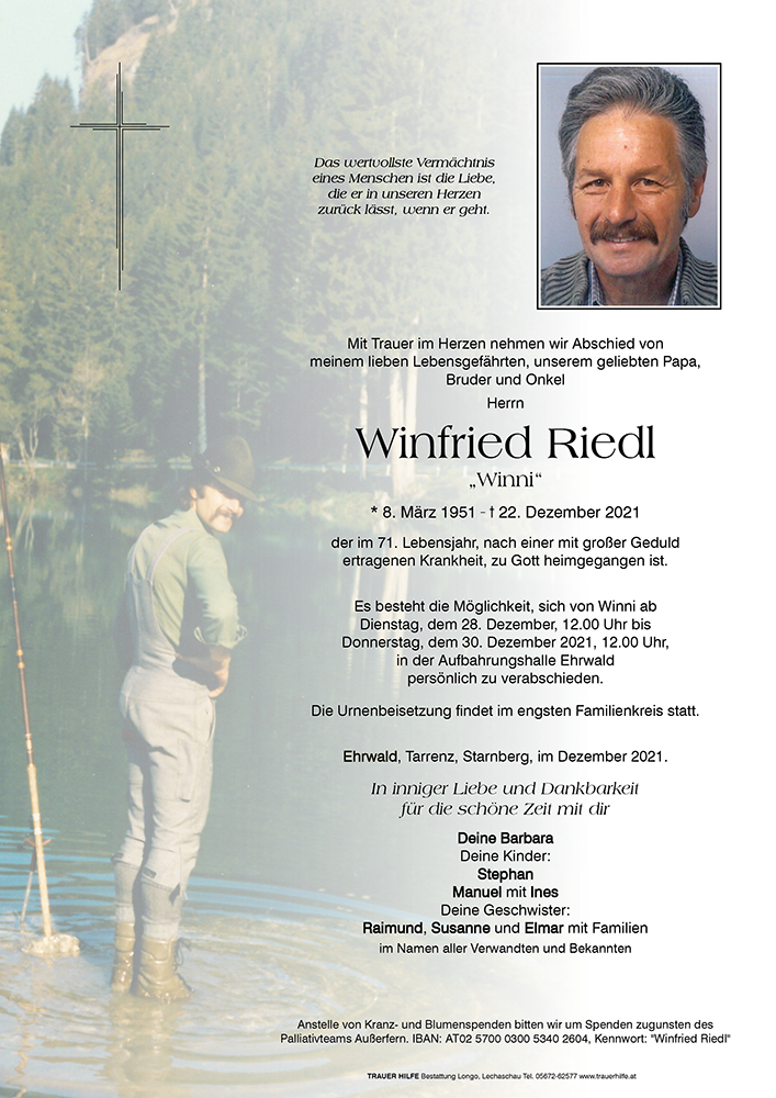 Winni, Du warst ein stets herzensguter und liebenswerter Mensch. Viel Kraft wünsche ich von ganzem Herzen Deiner Familie und allen die um Dich trauern. Pfiati Winni.