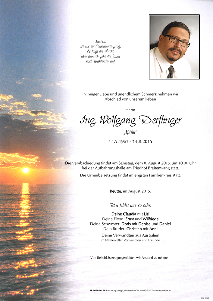 Kondolenzbuch für Wolfgang Derflinger
