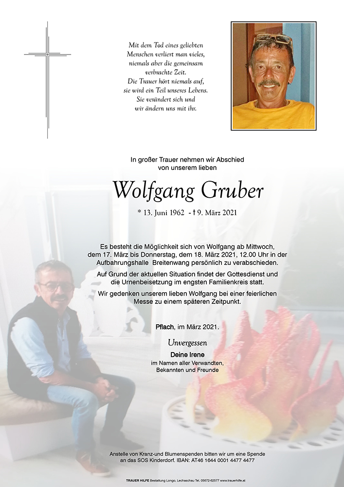 Liebe Irene - fassungslos hab ich heute erfahren, dass dein lieber Wolfgang von dir gegangen ist.