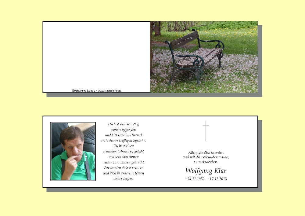 Kondolenzbuch für Wolfgang Klar
