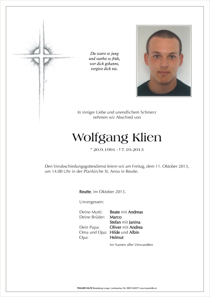 Kondolenzbuch für Wolfgang Klien