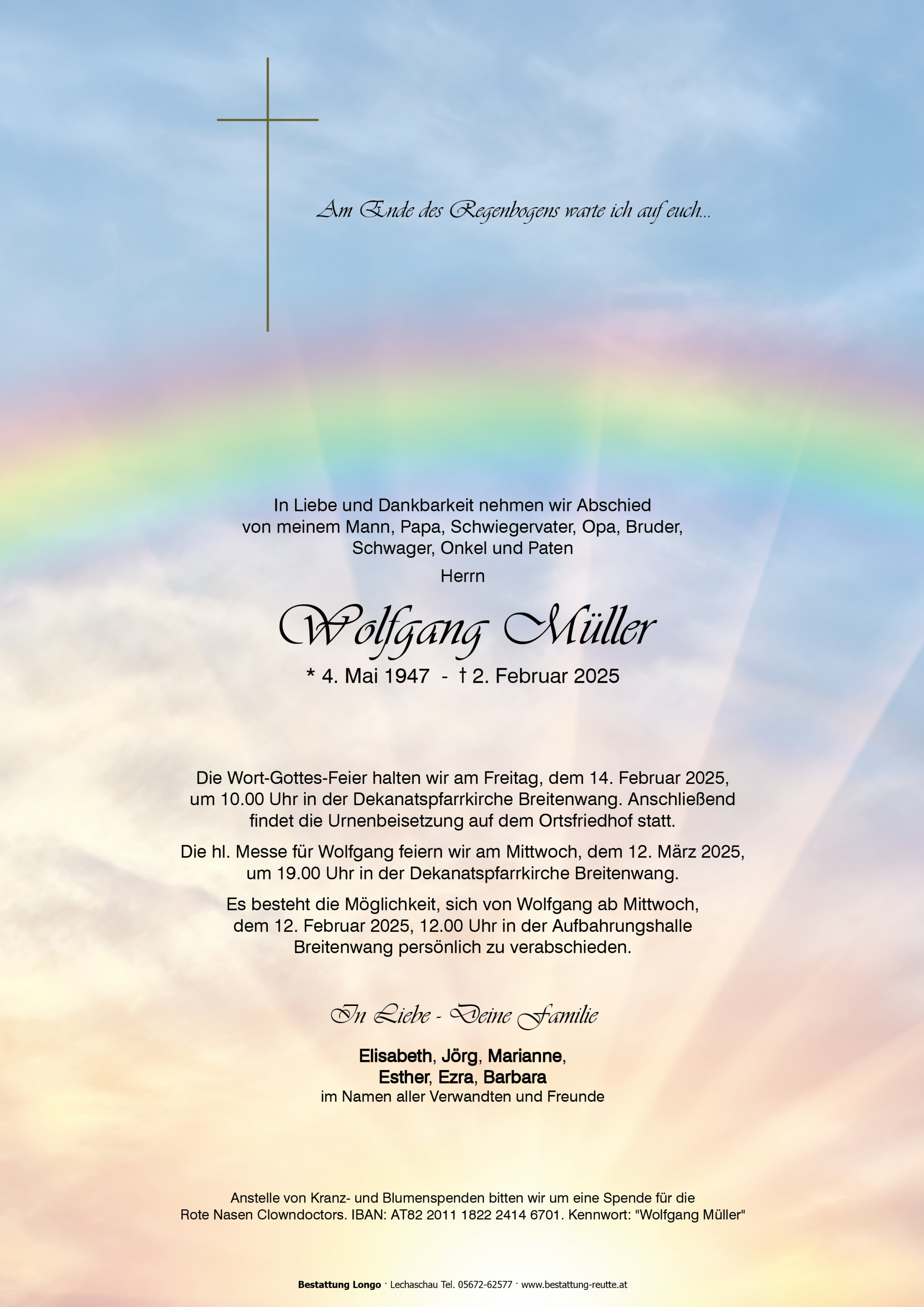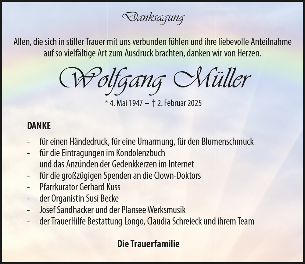Kondolenzbuch für Wolfgang Müller