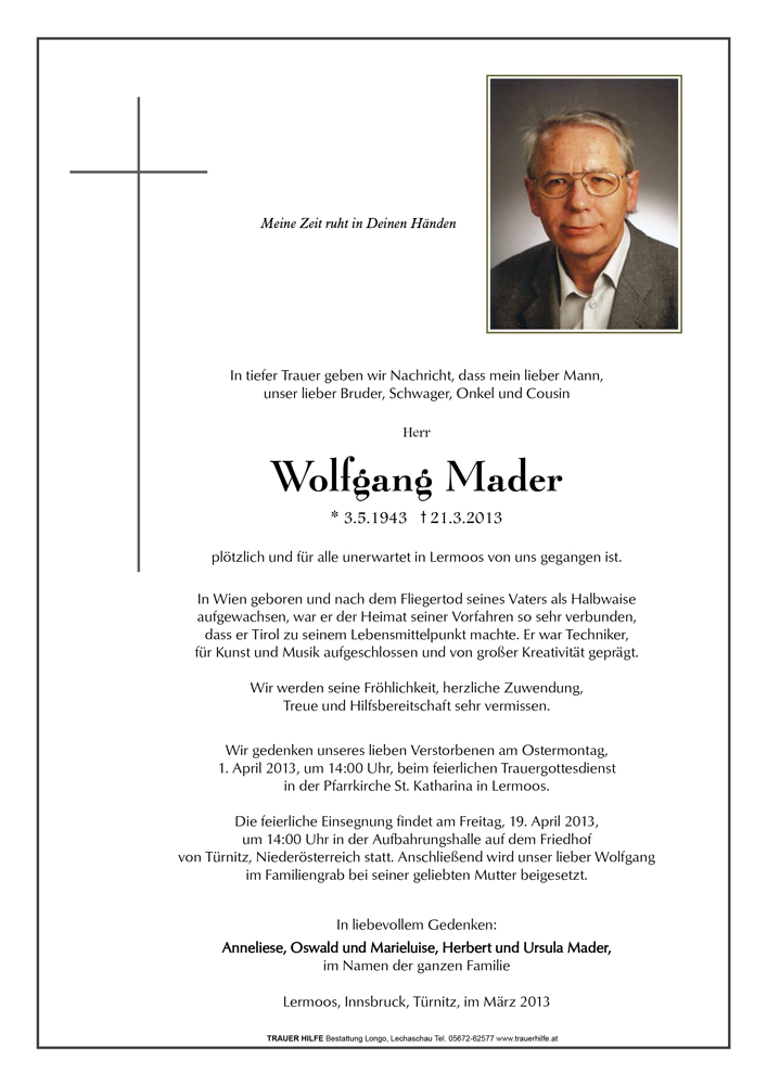 03.05.1943 21.03.2013 Lermoos Wolfgang Mader Action Parte Sterbebild Gedenkkerzen Kondolenzen Parte Sterbebild Gedenkkerzen Kondolenzen Parte herunterladen Sterbebild herunterladen Gedenkkerzen für Wolfgang Mader 6 Einträge Kerze anzünden Neujahrskerze für dich Weihnachtslicht Ein Licht für die Ewigkeit! Ein Licht für die Ewigkeit! Familie Barbara Kolednik Ruhe in Frieden Ihre Gedenkkerze fürWolfgang Mader Ihr Name* Farbe auswählen Ihre Nachricht oder Name* E-Mail-Adresse* Mit dem Klicken auf "Kerze anzünden" erklären Sie sich mit unseren Datenschutzbestimmungen einverstanden. Kondolenzbuch für Wolfgang Mader 0 Einträge Kondolenz verfassen Ihr Abschiedsgruß an Wolfgang Mader Ihr Name* E-Mail-Adresse* Ihre Nachricht* Mit dem Klicken auf "Gruß absenden" erklären Sie sich mit unseren Datenschutzbestimmungen einverstanden.