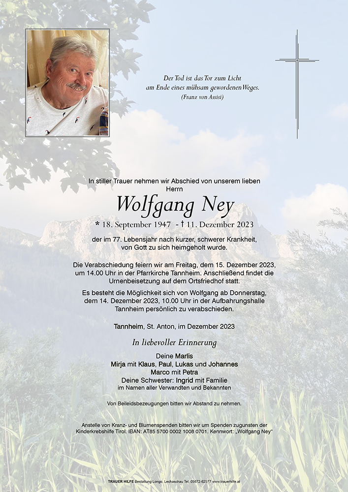 Kondolenzbuch fĂĽr Wolfgang Ney
