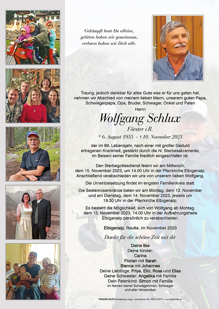 Das Team der Bezirksforstinspektion und die Waldaufseher des Bezirkes Reutte möchten ihr aufrichtiges Beileid zum Ausdruck bringen und wünschen viel Kraft in dieser schweren Zeit!
