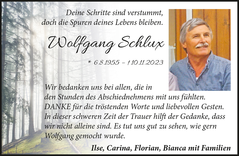 Kondolenzbuch für Wolfgang Schlux