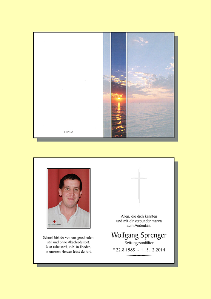 Als ehemalige Nachbarin von Euch, möchte ich mein aufrichtiges Mitgefühl aussprechen. Es tut mir sehr leid, dass ihr so einen schweren Schicksalsschlag erfahren müsst. Ich wünsche Euch in all den schweren Stunden viel, viel Kraft und dass die gemeinsamen Erinnerungen an euren Wolfgang, euch gegenseitig stärken und stützen.