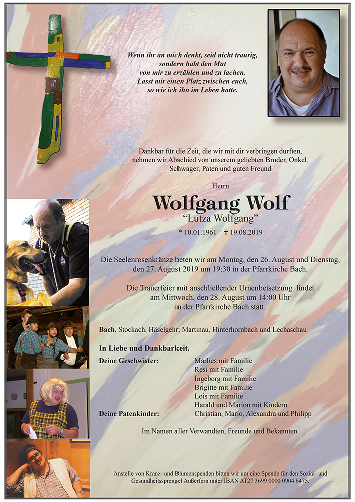 Kondolenzbuch für Wolfgang Wolf