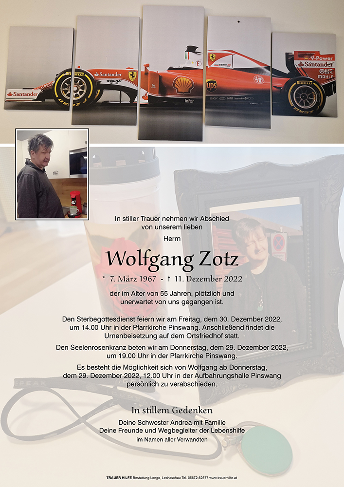 Kondolenzbuch für Wolfgang Zotz