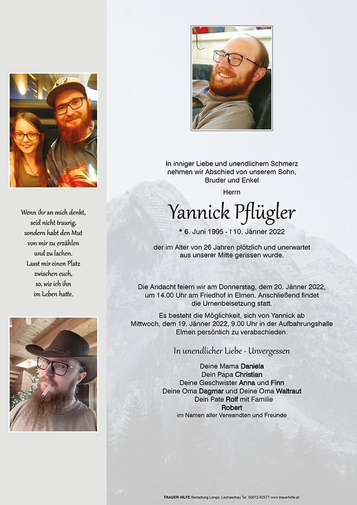 Kondolenzbuch für Yannick Pflügler