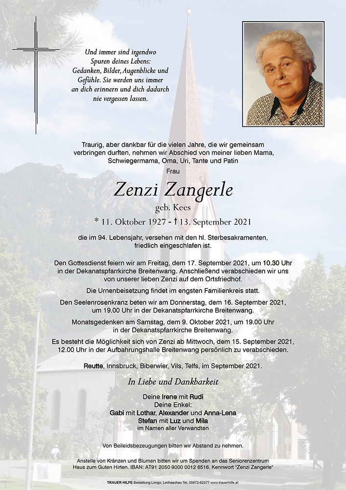 Kondolenzbuch für Zenzi Zangerle