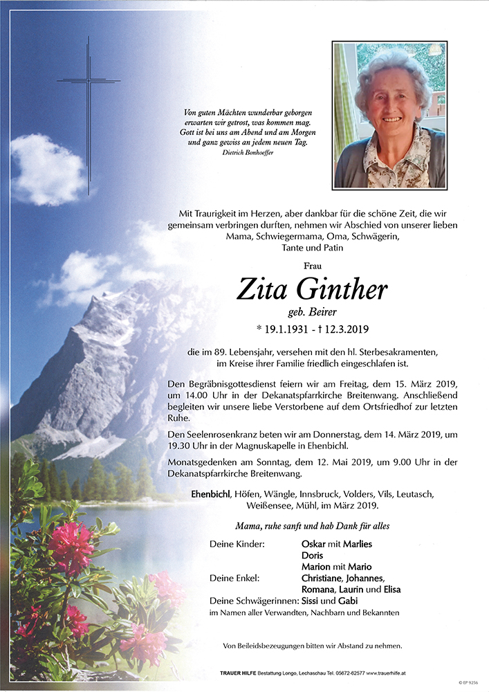Aufrichtige Anteilnahme in dieser schweren Zeit entbietet. Sonja und Günther Köchl/Vils