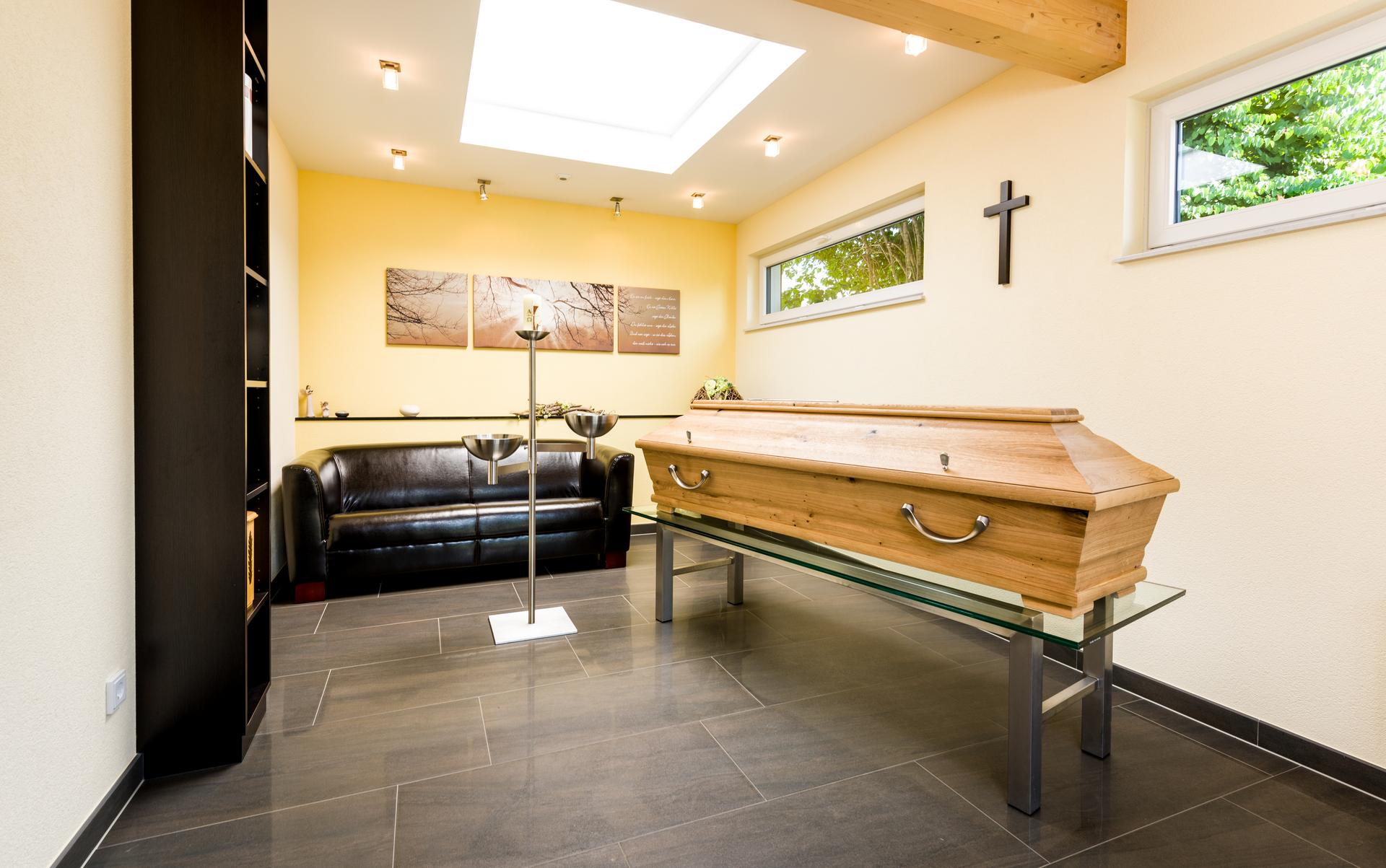 Hinter dem Haus, abgeschirmt vom Alltag, liegt unser gepflegter Garten mit einem modernen Verabschiedungsraum. Still, würdevoll und ganz dem Abschied gewidmet. Gerade in herausfordernden Zeiten ist es wichtig, einen sicheren Ort zu haben, an dem Trauer Raum bekommt und ein Loslassen in Würde möglich wird.